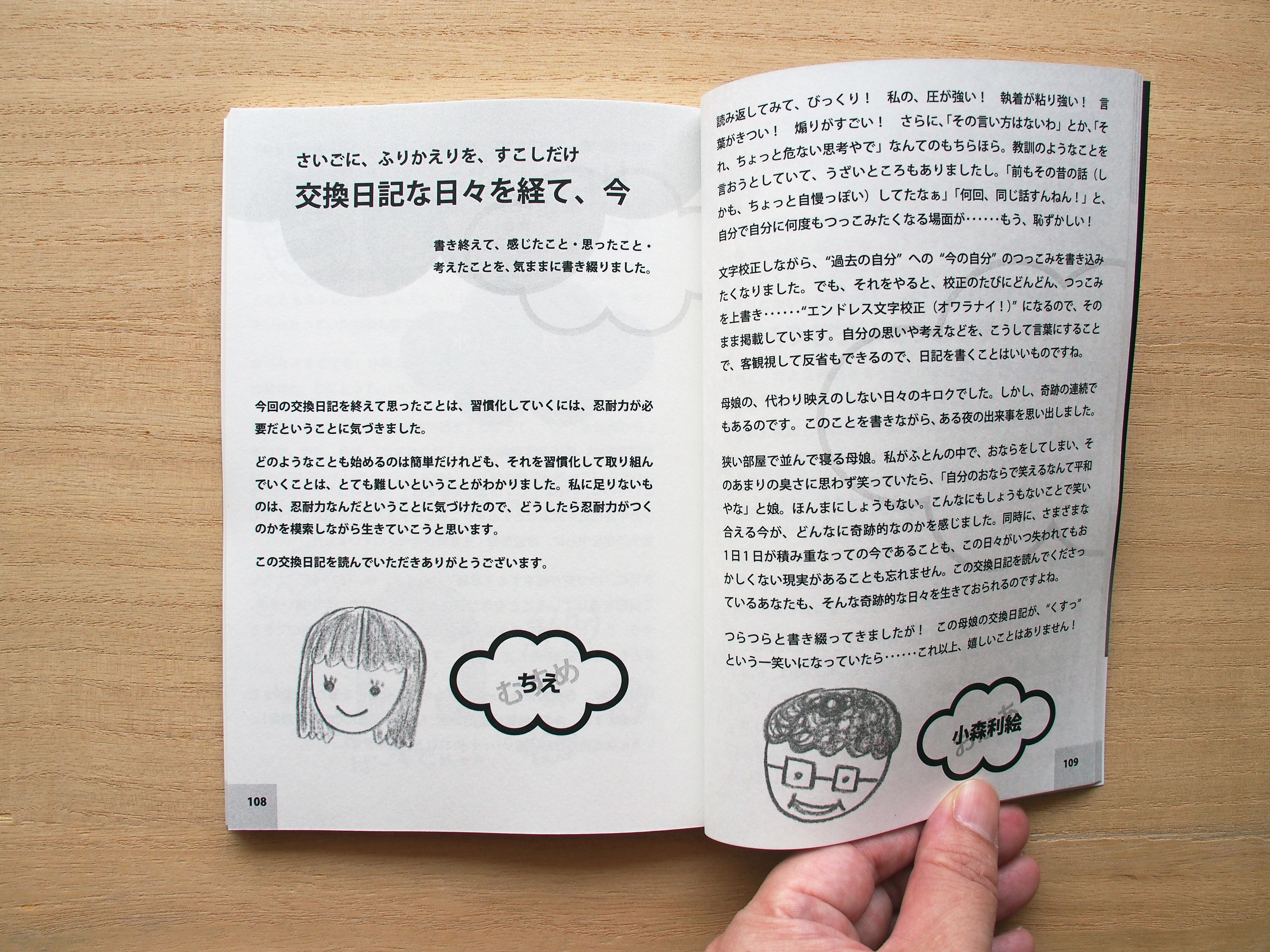 娘が夜に書いた日記に、母が翌朝返事をする形式で、約3カ月。その交換日記をまとめて、ZINE『ふわごわ Our life~娘が18歳までの約3カ月間、母娘で交換日記~』をつくりました。